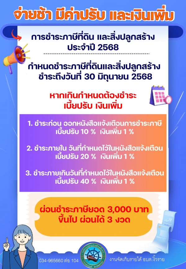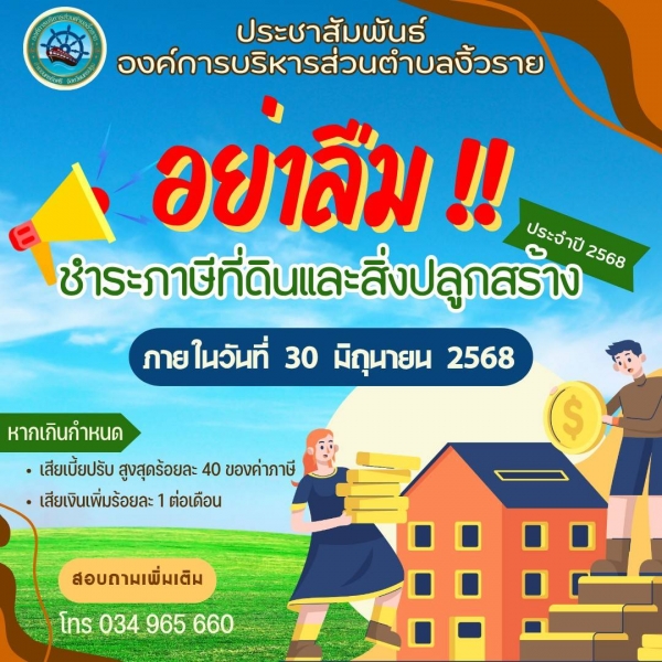 #อย่าลืม!!! ชำระภาษีที่ดินและสิ่งปลูกสร้าง ประจำปี 2568