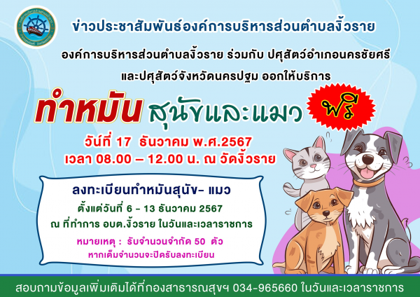 ข่าวประชาสัมพันธ์ เรื่องทำหมันสุนัขและแมว